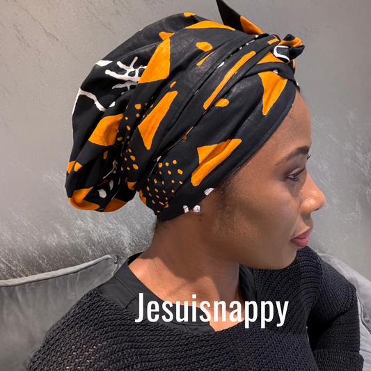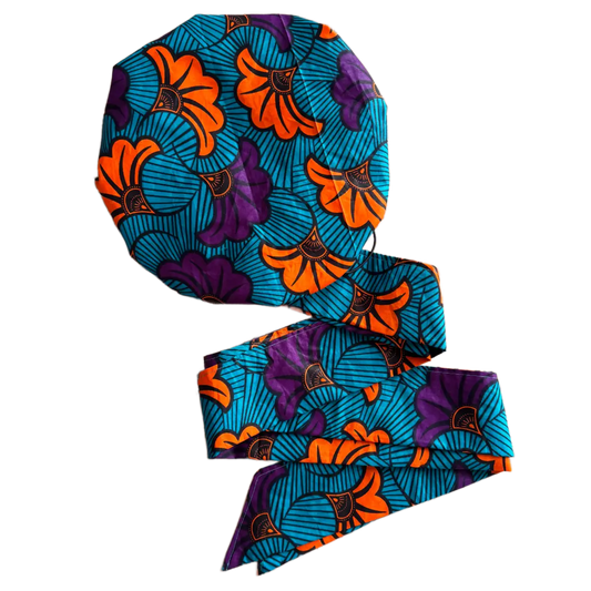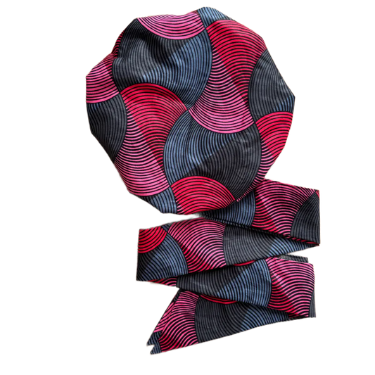 Turban en satin et wax "Maputo" ajustable - Taille standard