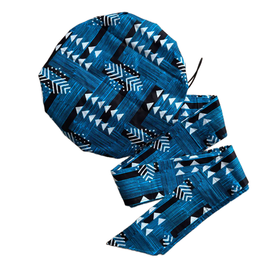 Turban Bogolan doublé de satin "Kaya" ajustable - Taille standard