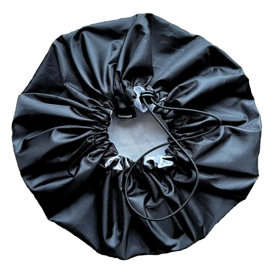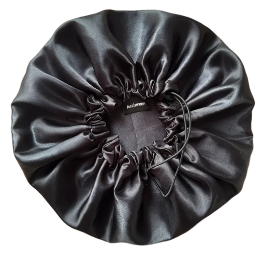 Pack bonnet et taie d’oreiller en satin noir – "Caviar"